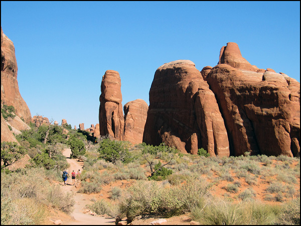 This is the "Double-O" arch in Arches National Park, Utah. The arch is beautiful but the four-mile hike to the arch was the best part with magnificient views of the surrounding canyons,